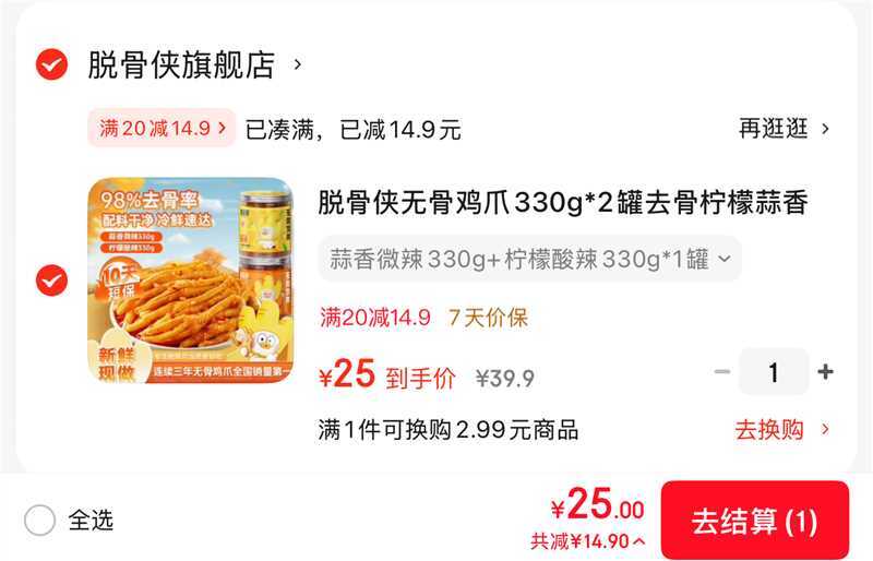 25亓 脱骨侠无骨鸡爪330g*2