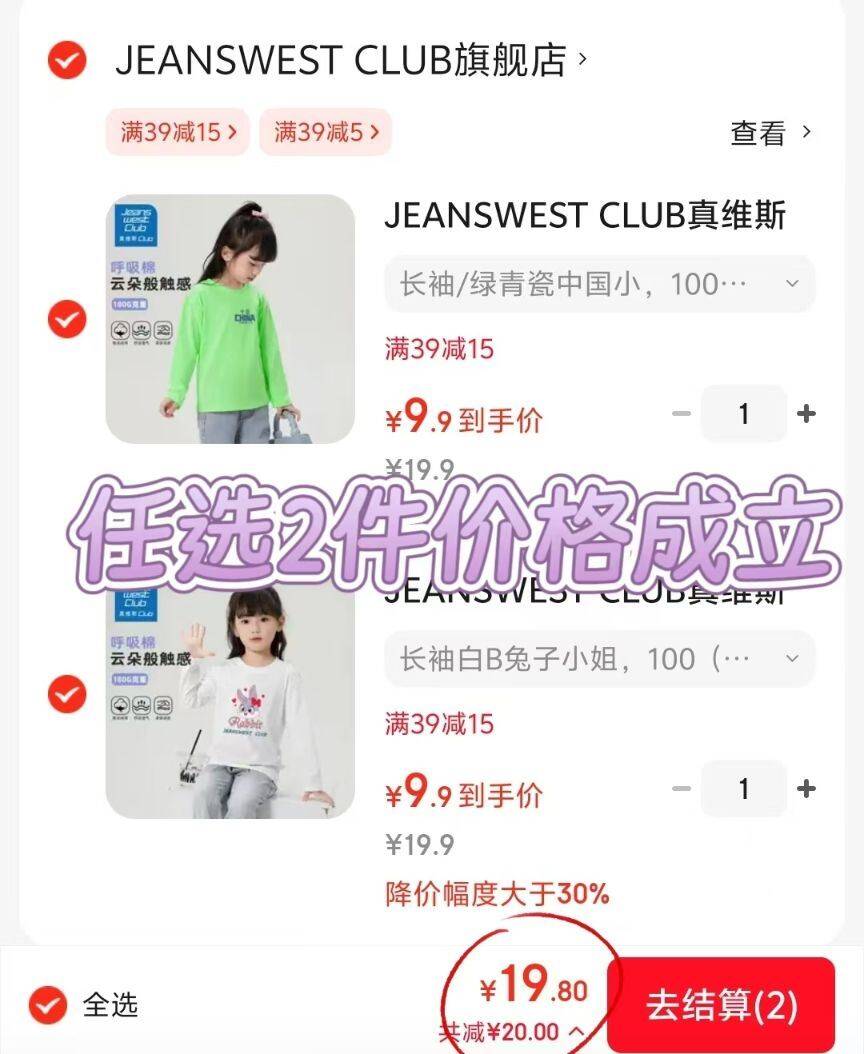 任选2件19.9亓,宝妈抓紧
