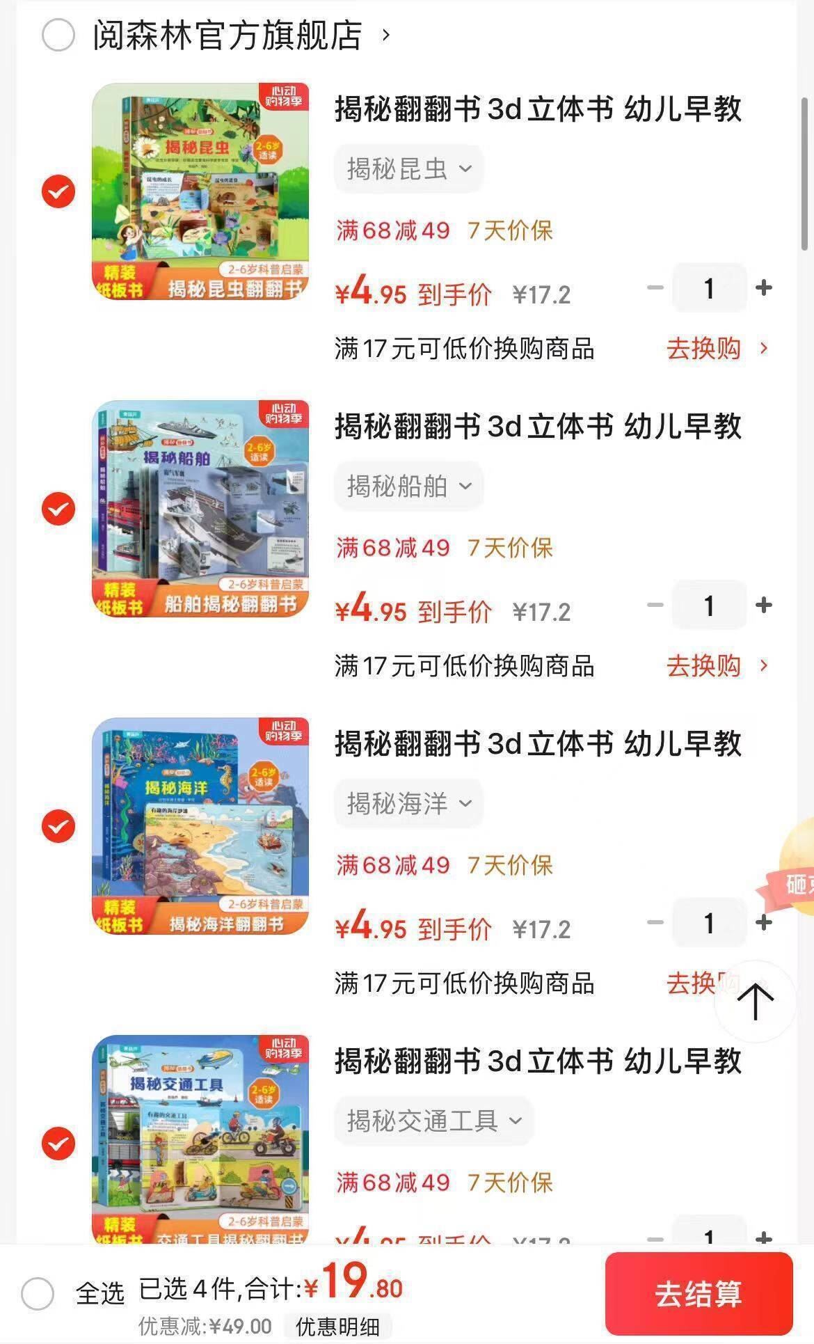 19.8元任选4本 才4块多一本! 《科普启蒙翻翻书》揭秘系列 有身体、交通、动物、昆虫等可选 好单发报员 2025年11月24日 19:22 0 举报 19.8元任选4本 才4块多一本!《科普启蒙翻翻书》揭秘系列https://u.jd.com/WaPrP0N有身体、交通、动物、昆虫等可选孩子超爱看 历史最低价!!! 复制文案