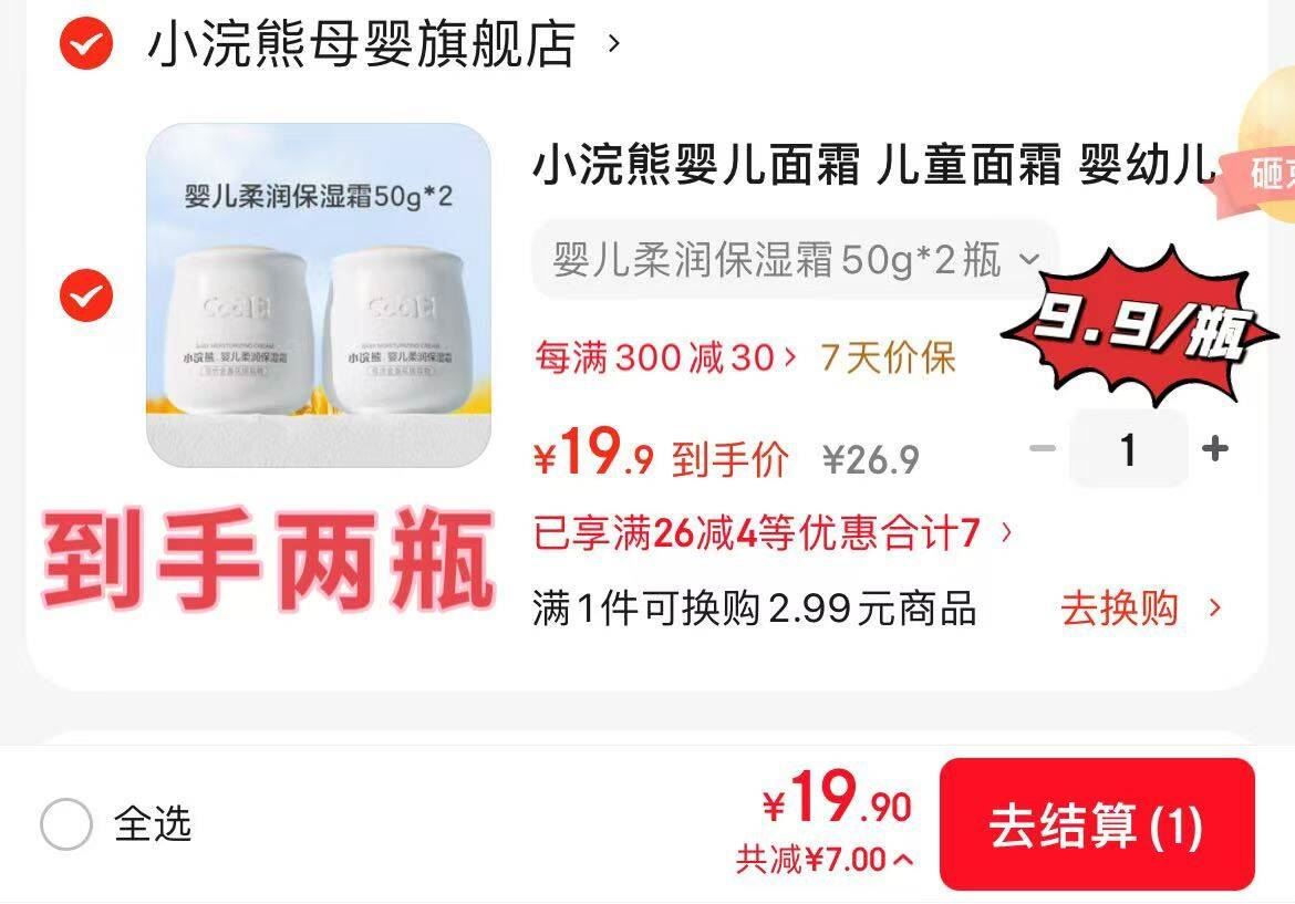 小浣熊 婴幼儿柔润保湿面霜50g*2罐