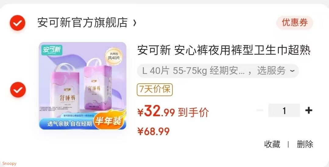 个护59-10 安可新 安心裤 40条【32.9】好单发报员2025年11月24日 20:250举报 https://u.jd.com/WgP6Oee安可新 安心裤 40条【32.9】https://u.jd.com/WrP0cB7复制文案