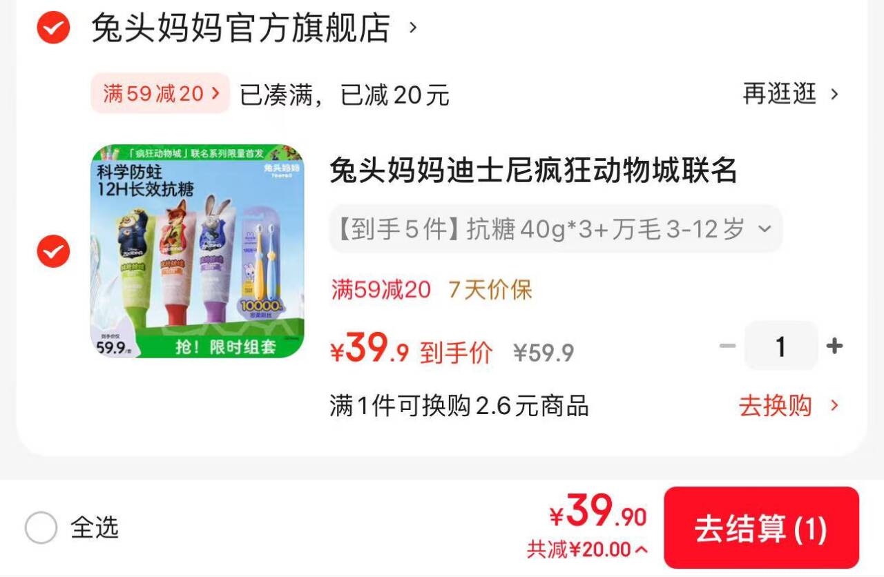 兔头妈妈牙膏40g*3支 牙刷2支装