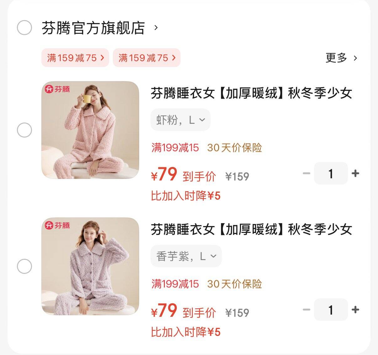 领29-5券 芬腾加厚暖绒睡衣套装 79亓 - 线报酷