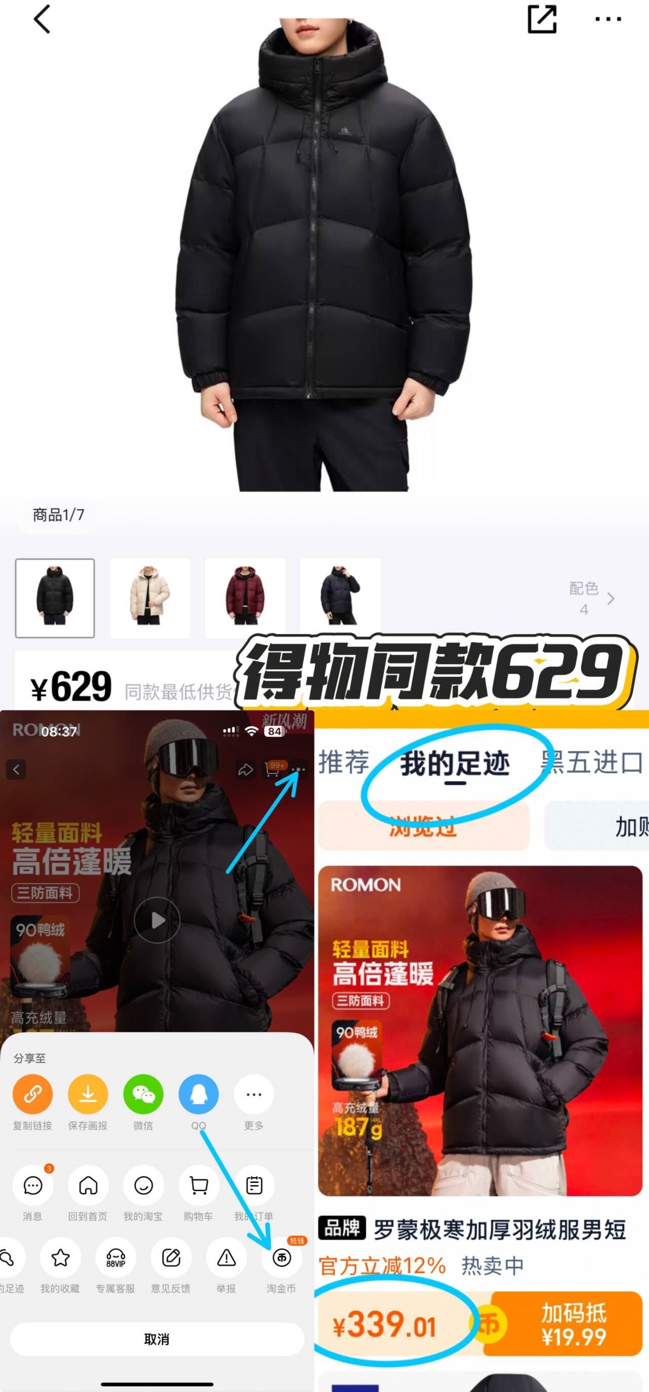 339元罗蒙旗舰店 罗蒙极寒加厚蓄热羽绒服 轻暖与强御寒的冬日利器好单发报员2025年11月25日 14:450举报 339元罗蒙旗舰店罗蒙极寒加厚蓄热羽绒服轻暖与强御寒的冬日利器高性圿比之选 当然选罗蒙-1、領奍 点右上角淘金币2、我的足迹 找到蔏品下単https://m.tb.cn/h.SDeSBmO复制文案