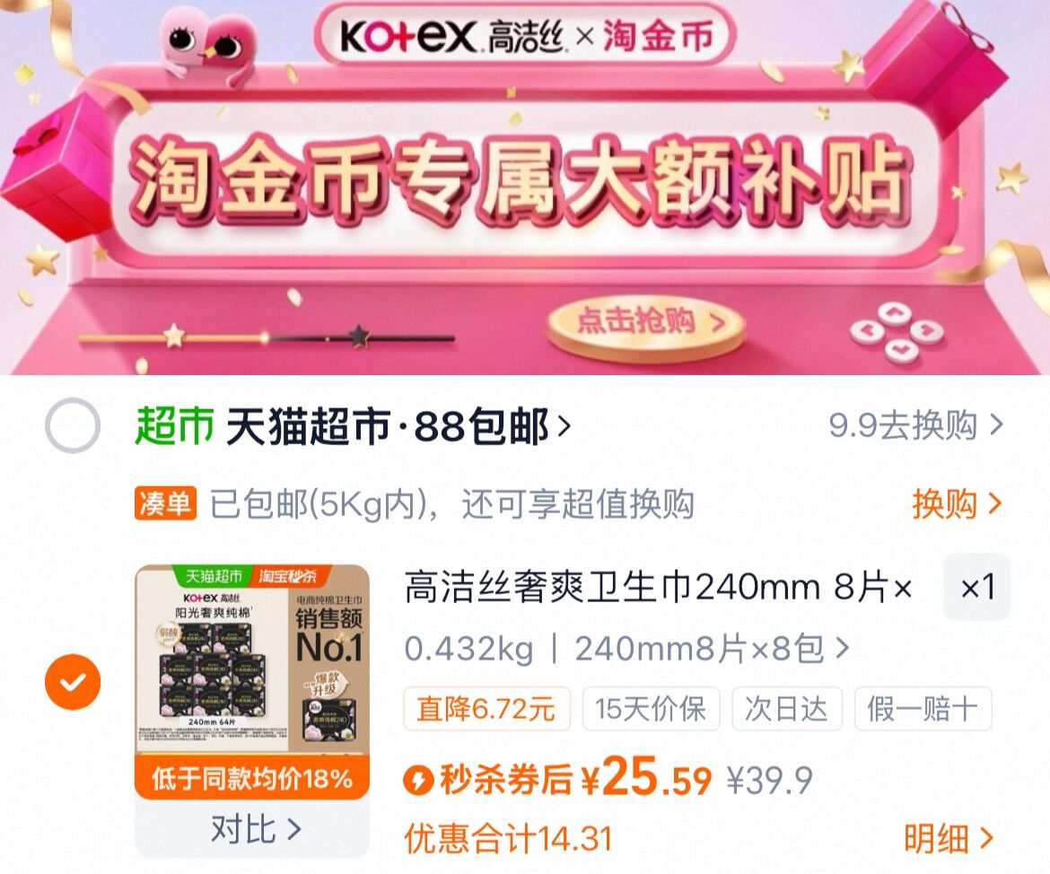下拉详情拍 25.5亓 高洁丝纯棉卫生巾240mm*64片 好单发报员 2025年11月25日 15:00 0 举报 下拉详情拍 25.5亓高洁丝纯棉卫生巾240mm*64片https://m.tb.cn/h.SDoBK9G 复制文案