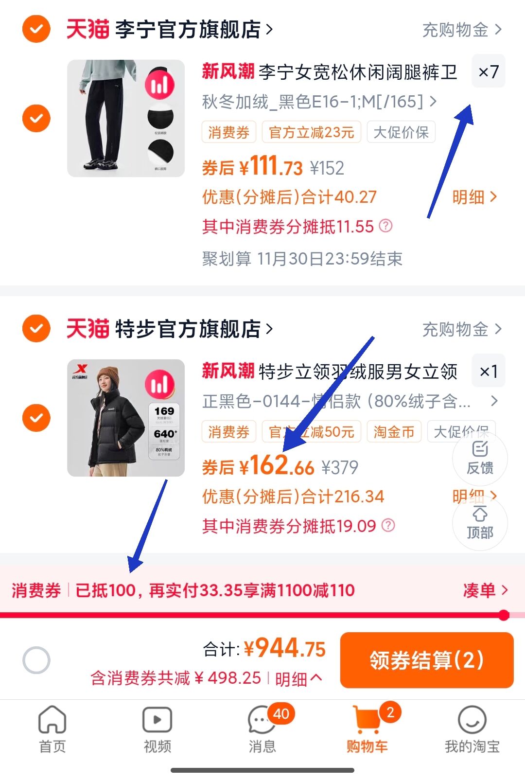 根据消费劵大小 提高裤子件数