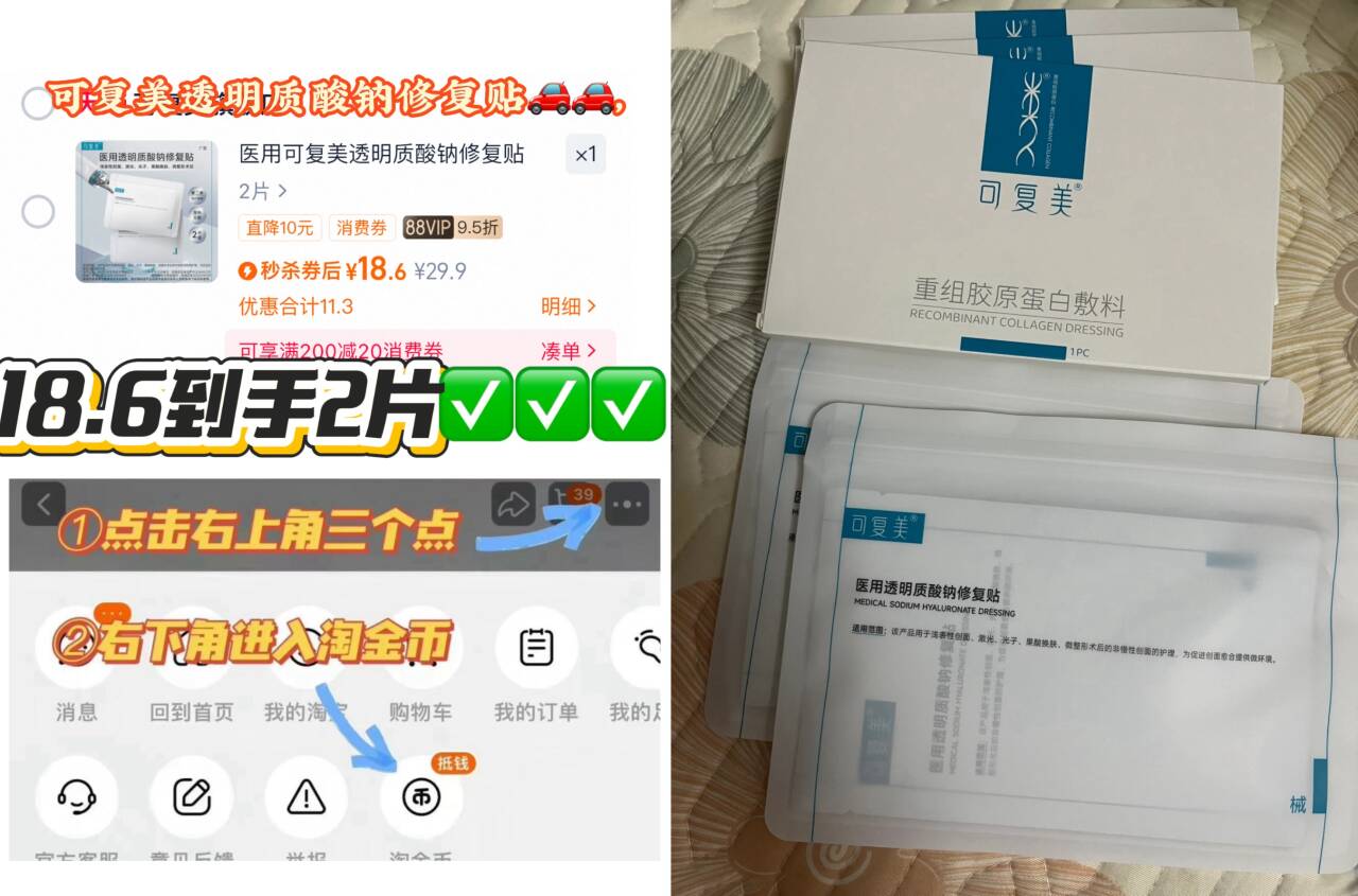 叠右上淘金币 2片元18.6 可复美透明质酸钠修复贴 对敏感肌友好 适合大干皮 好单发报员 2025年11月25日 15:14 0 举报 叠右上淘金币 2片元18.6可复美透明质酸钠修复贴对敏感肌友好 适合大干皮皮肤维稳 医用级别放心用~-https://m.tb.cn/h.SxJenp0 复制文案