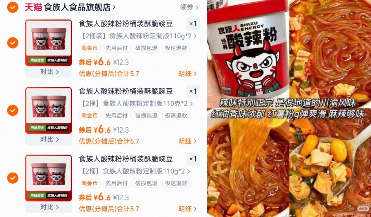 ③件19.7元详情页下単 食族人酸辣粉组合任选6桶 酸辣够味喜欢吃辣的宝子冲 好单发报员 2025年11月25日 17:35 0 举报 ③件19.7元详情页下単食族人酸辣粉组合任选6桶酸辣够味喜欢吃辣的宝子冲酸辣粉巨头 每次吃汤都不剩-https://m.tb.cn/h.SDBxBGq 复制文案