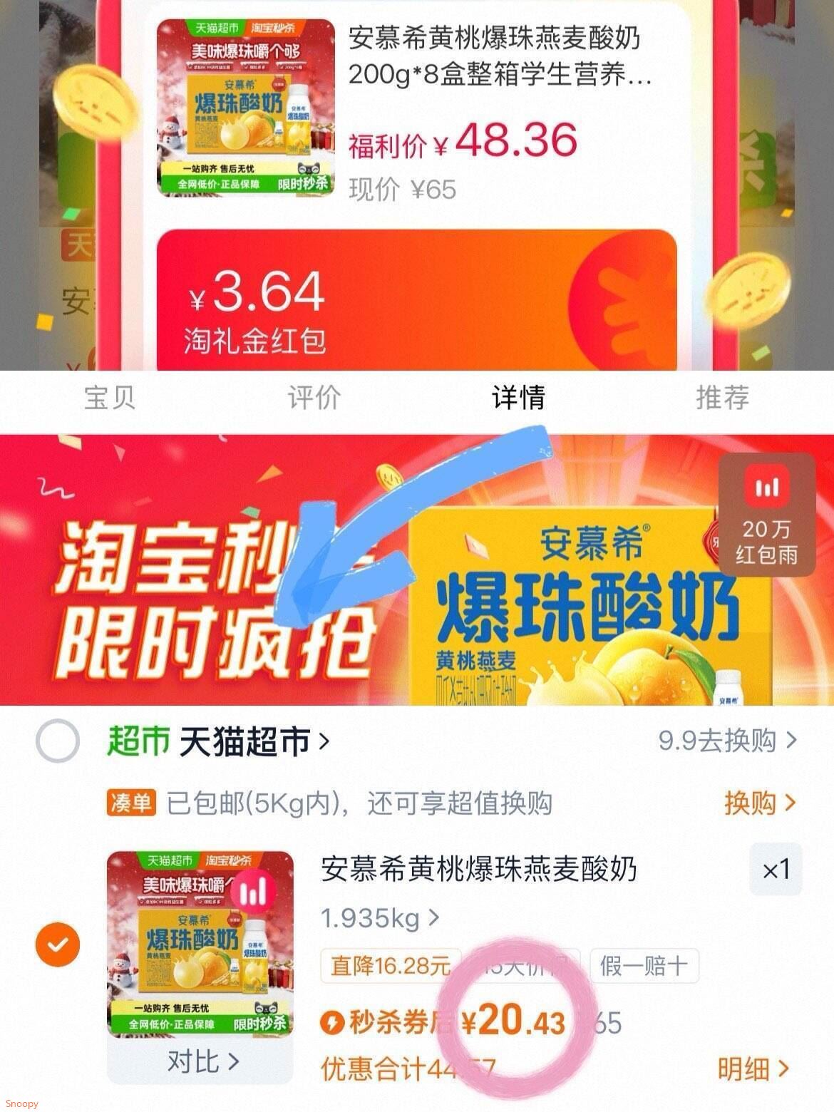 安慕希黄桃爆珠燕麦酸奶 200g*8盒元20.4 2.5/盒 - 好单发报员 2025年11月25日 21:57 0 举报 安慕希黄桃爆珠燕麦酸奶200g*8盒元20.4 2.5/盒-領禮金+下拉详情页秒莎!https://m.tb.cn/h.SxCBGYn 复制文案