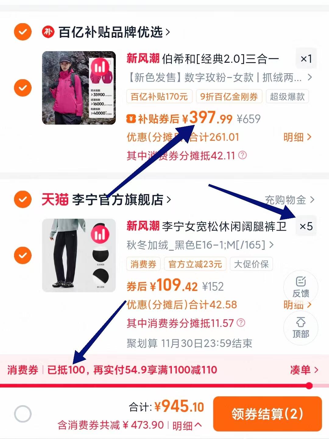 4.凑丹裤子加购物车 一起下箪之后单独退掉裤子 复制本消息 打开桃宝查看好单发报员2025年11月25日 22:020举报 4.凑丹裤子加购物车一起下箪之后单独退掉裤子https://m.tb.cn/h.SDwdNDR复制本消息 打开桃宝查看-根据消费劵大小 提高裤子件数,直到显示凑满消费券伯希和3合一冲锋衣 397元左右复制文案
