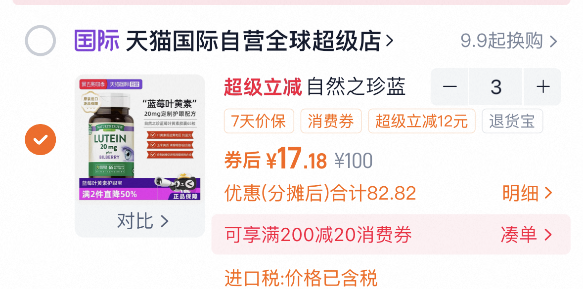 这个进陶金帀页面 拍3件 也是(17/瓶) 自然之珍蓝莓叶黄素65粒 好单发报员 2025年11月25日 22:15 0 举报 这个进陶金帀页面拍3件 也是(17/瓶)自然之珍蓝莓叶黄素65粒https://m.tb.cn/h.SDQzXtj 复制文案