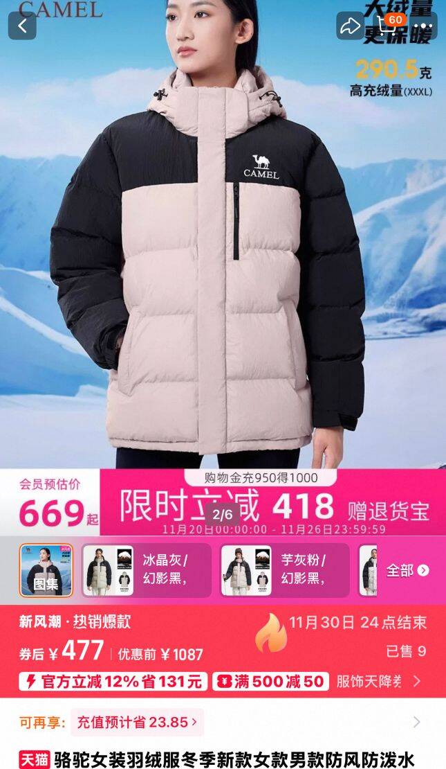 骆驼拒水绒羽绒服477元 - 商品右上角3个点,选淘金币 好单发报员 2025年11月26日 13:12 0 举报 骆驼拒水绒羽绒服477元-商品右上角3个点,选淘金币再选 我的足迹-找到商品拍下88用户,勾选9折消费券https://m.tb.cn/h.SCiAxX6叠服饰券 88消费券 复制文案