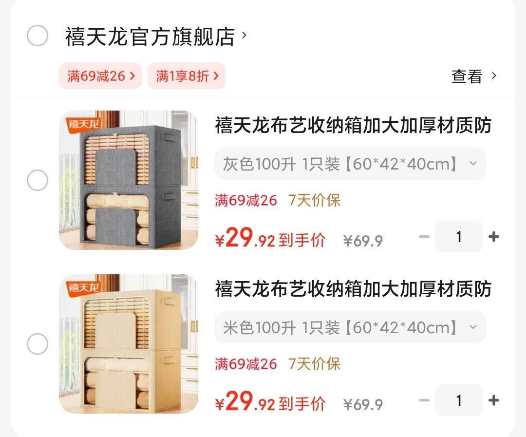 禧天龙 布艺收纳箱加大加厚防尘 100升