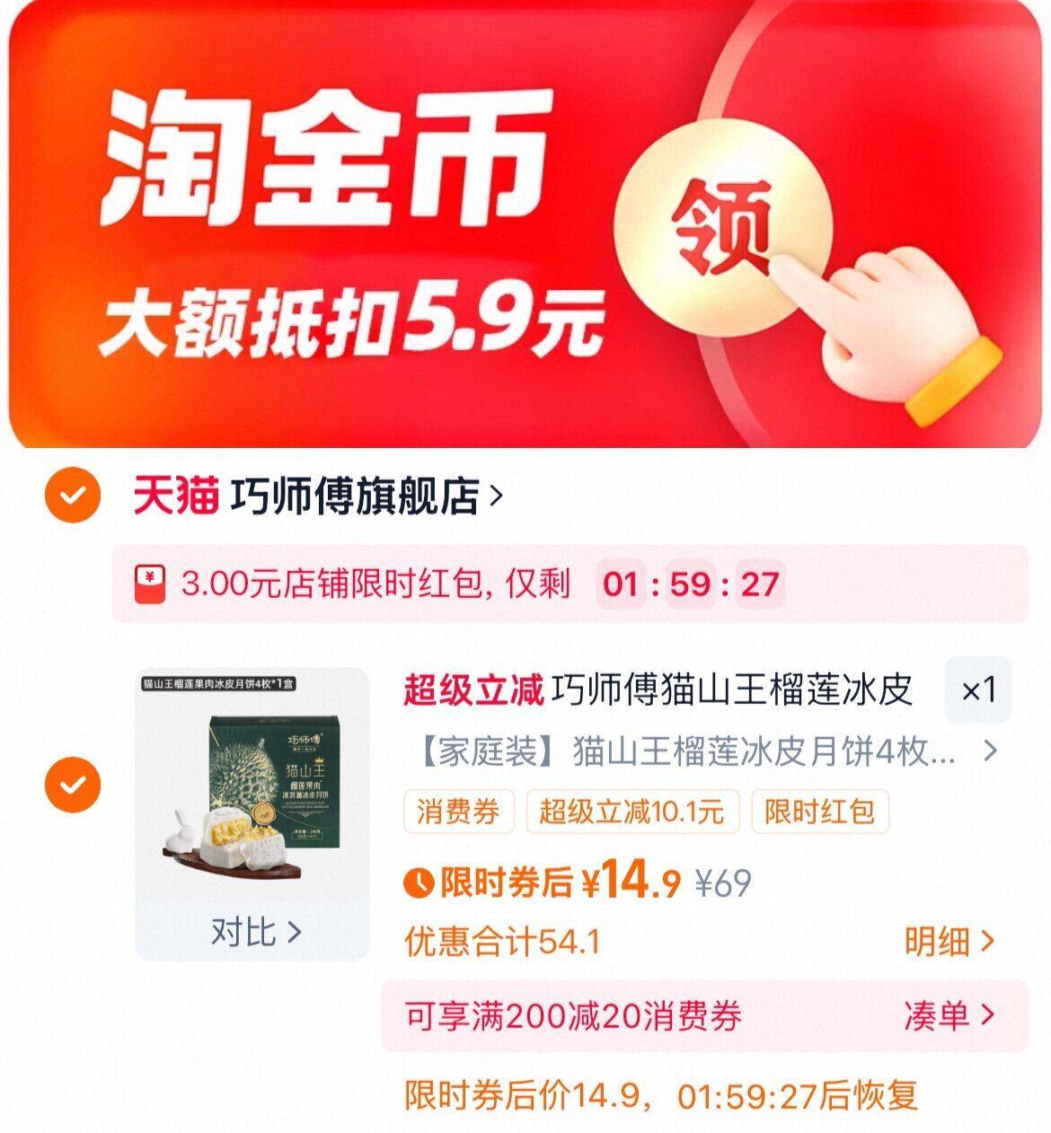 下拉拍,限时 14.9亓 巧师傅猫山王榴莲冰皮月饼60克*4个 好单发报员 2025年11月26日 13:25 0 举报 下拉拍,限时 14.9亓巧师傅猫山王榴莲冰皮月饼60克*4个https://m.tb.cn/h.SxhRQ8x 复制文案