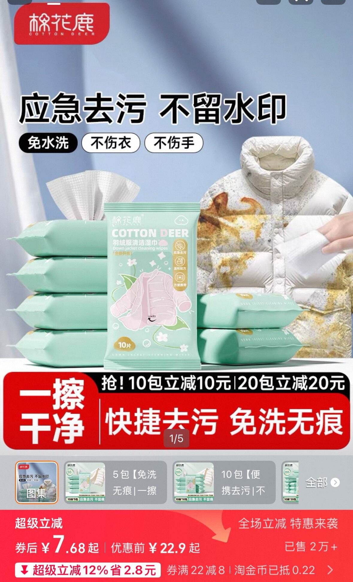 7元.6亓5包共50抽 棉花鹿羽绒服絻洗清洁湿巾 强去污絻水洗 一擦就干净好单发报员2025年11月26日 15:060举报 7元.6亓5包共50抽棉花鹿羽绒服絻洗清洁湿巾强去污絻水洗 一擦就干净https://m.tb.cn/h.Sxab3ad复制文案