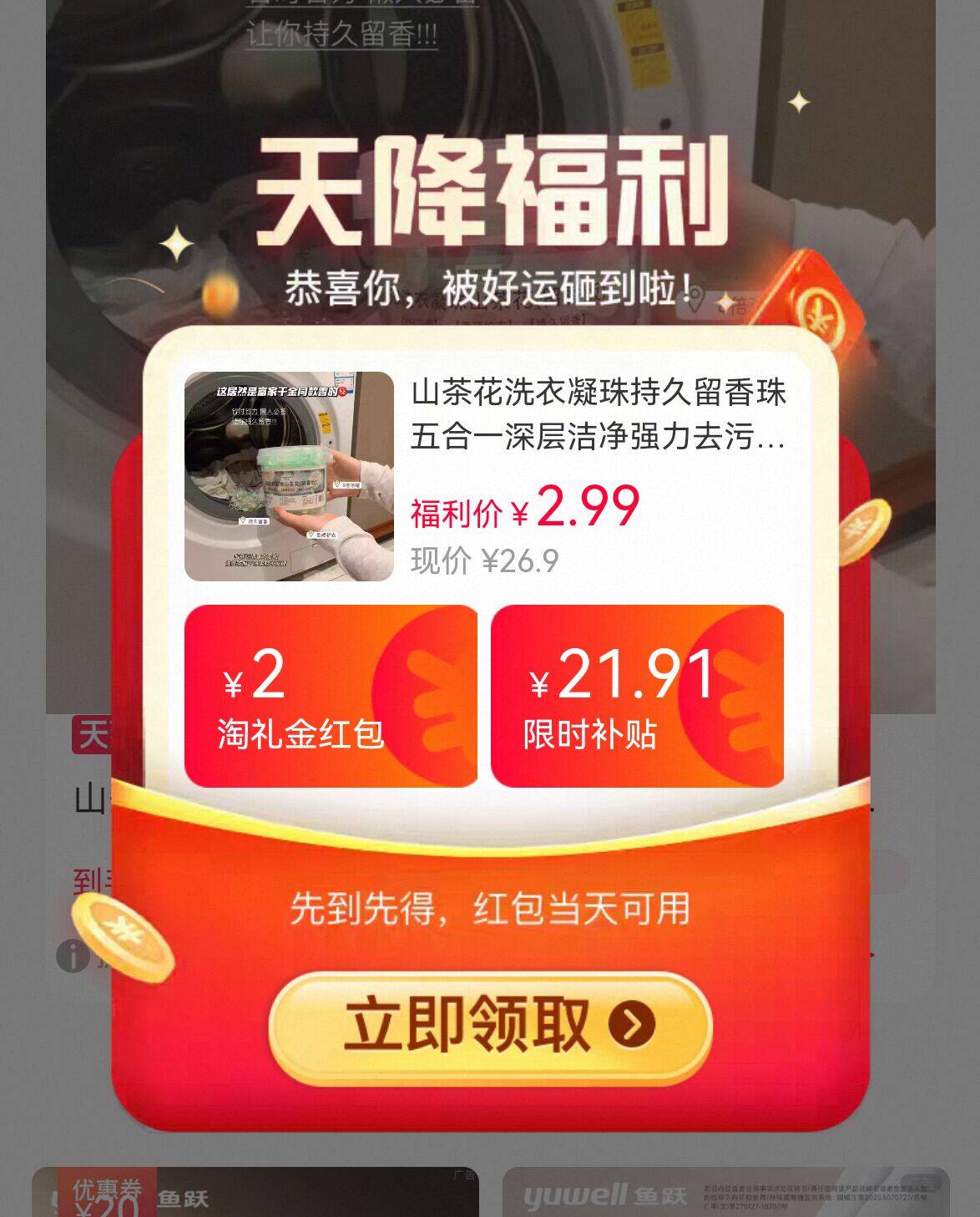 2.9亓天降礼金补贴 山茶花洗衣凝珠50粒
