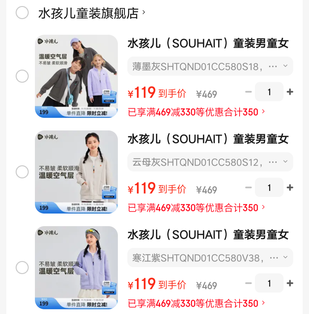 119元 百搭好穿! 领补贴 水孩儿 儿童舒适百搭上衣外套好单发报员2025年11月26日 22:210举报 119元 百搭好穿!领补贴https://u.jd.com/WaAJWd6水孩儿 儿童舒适百搭上衣外套https://u.jd.com/WDEtOTE尺码任选 高弹力不易变形!复制文案