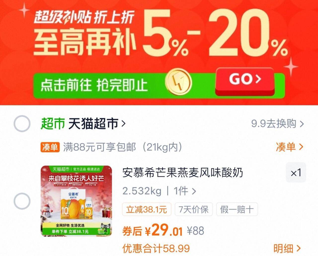 下拉详情拍,29亓 安慕希 芒果燕麦酸奶 200g*10瓶