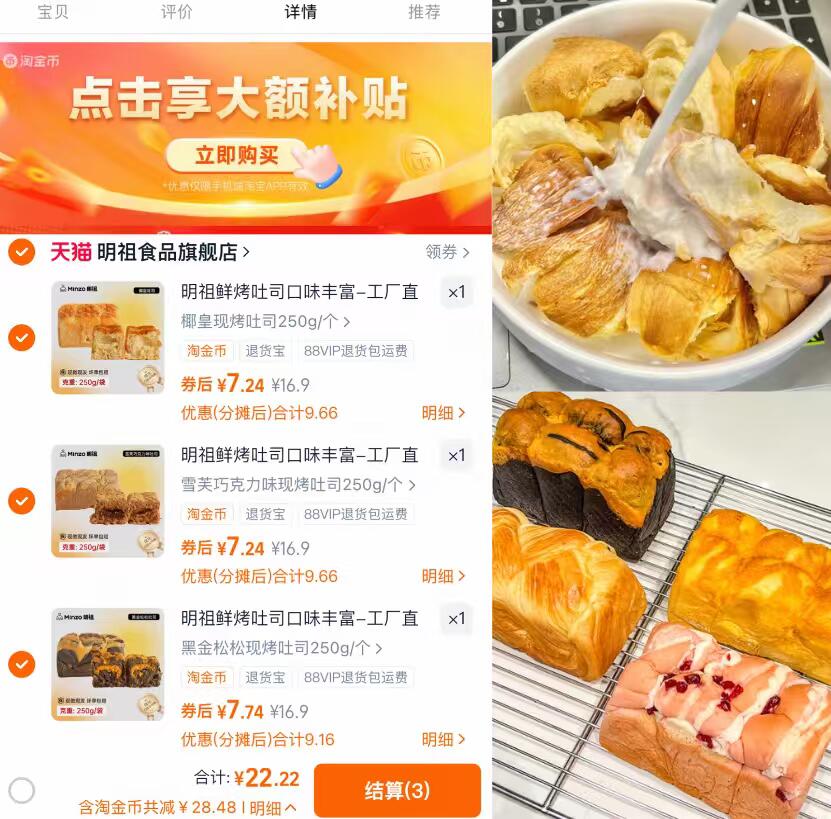 7.4/件 明祖现烤吐司面包 拍件22.2~下拉金币 现做现发纯奶和面好吃 好单发报员 2025年11月26日 22:57 0 举报 7.4/件 明祖现烤吐司面包拍件22.2~下拉金币现做现发纯奶和面好吃无添加 每一片都很厚实松软速屯 早八党的早餐有着落啦!-https://m.tb.cn/h.SCH6mm7 复制文案
