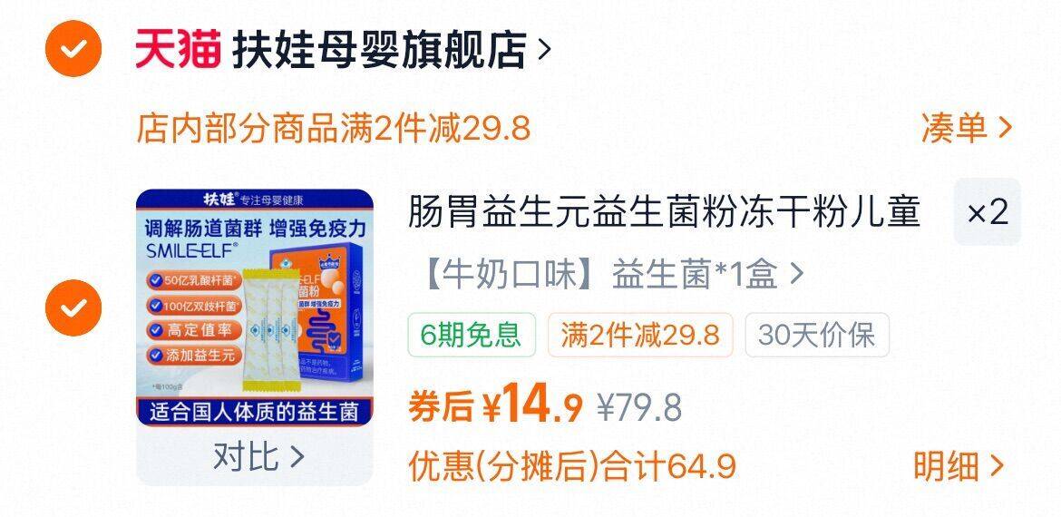 拍2件,折14.9亓/盒 扶娃 肠胃益生菌粉2盒 好单发报员 2025年11月27日 12:19 0 举报 拍2件,折14.9亓/盒扶娃 肠胃益生菌粉2盒https://m.tb.cn/h.SCh4Dio 复制文案