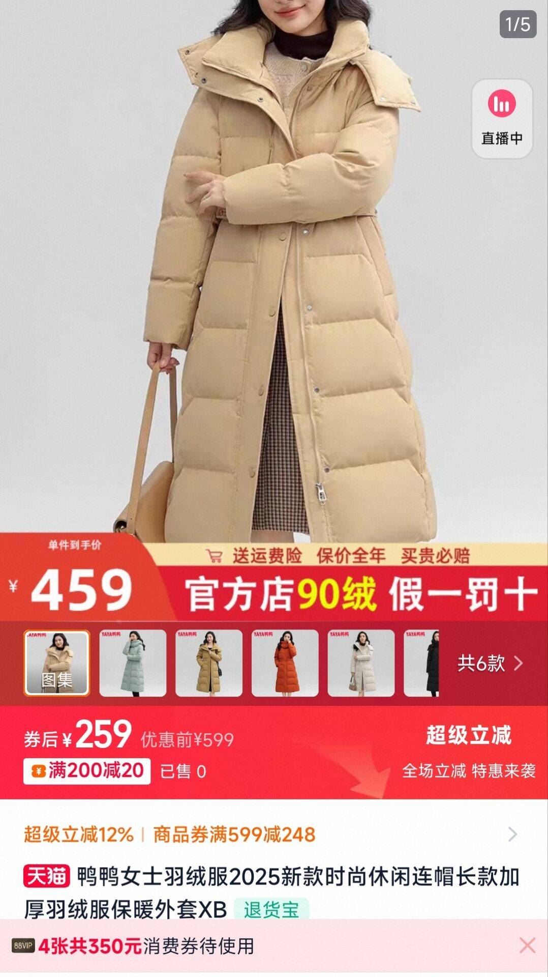 叠服饰券 消费券259元 鸭鸭 长款过膝羽绒服女 高充绒!零下10度不嫌冷!