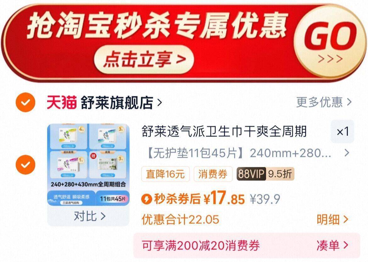 下拉详情拍 vip 17.8折1.6亓/包 舒莱 日夜卫生巾11包共45片 好单发报员 2025年11月27日 12:38 0 举报 下拉详情拍vip 17.8折1.6亓/包舒莱 日夜卫生巾11包共45片https://m.tb.cn/h.SCS3T82 复制文案