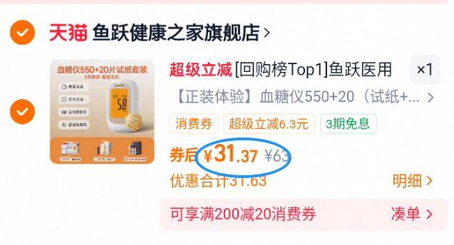 31.3亓速拍最后1选项 赠收纳盒 采血笔 电池 鱼跃 血糖仪 20试纸 20采样针 好单发报员 2025年11月27日 12:47 0 举报 31.3亓速拍最后1选项赠收纳盒 采血笔 电池【鱼跃】血糖仪 20试纸 20采样针https://m.tb.cn/h.SxJ4T8s-----鱼跃史低抓紧!线下都得七八十可以给自己测 做到有备无患 复制文案
