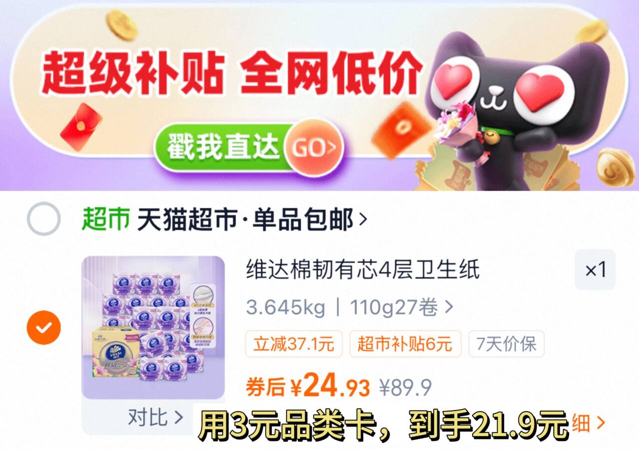 下拉拍,0.8元/卷 用3卡,vip 21.9元 维达 棉韧有芯卷纸110克4层27卷 好单发报员 2025年11月27日 12:53 0 举报 下拉拍,0.8元/卷用3卡,vip 21.9元维达 棉韧有芯卷纸110克4层27卷(2cOnfMlPwQQ( 复制文案