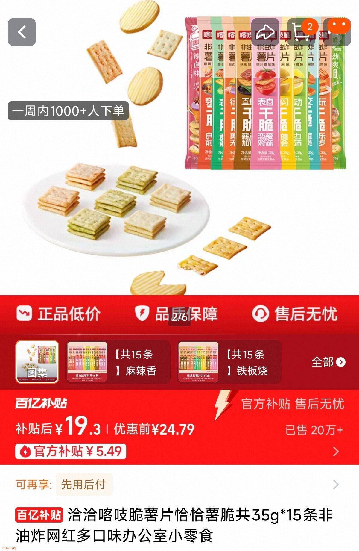 19.3亓百补 洽洽喀吱脆薯片35g*15条