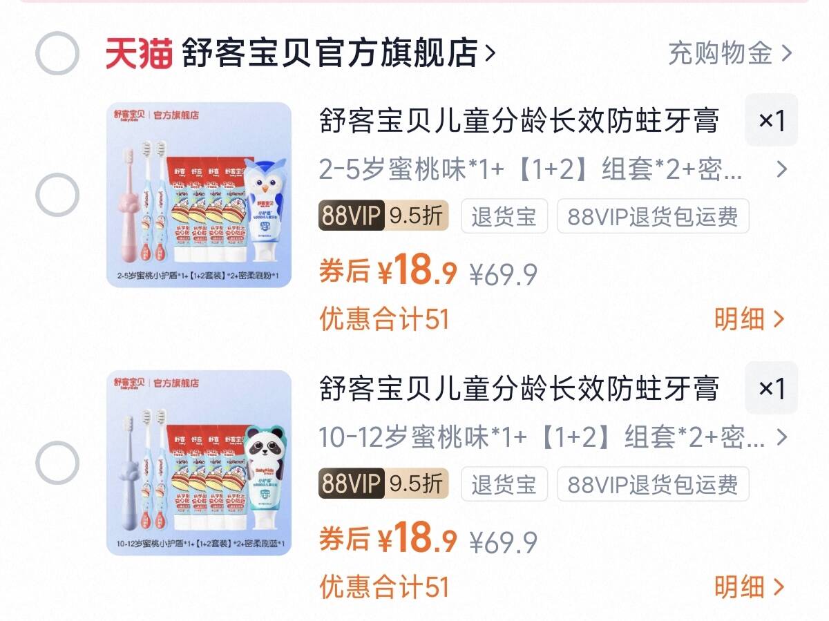 舒客儿童牙膏件19元.9! 含氟防蛀5支牙膏 3支牙刷 好单发报员 2025年11月27日 17:35 0 举报 舒客儿童牙膏件19元.9!含氟防蛀5支牙膏 3支牙刷https://m.tb.cn/h.SxwyzfG 复制文案