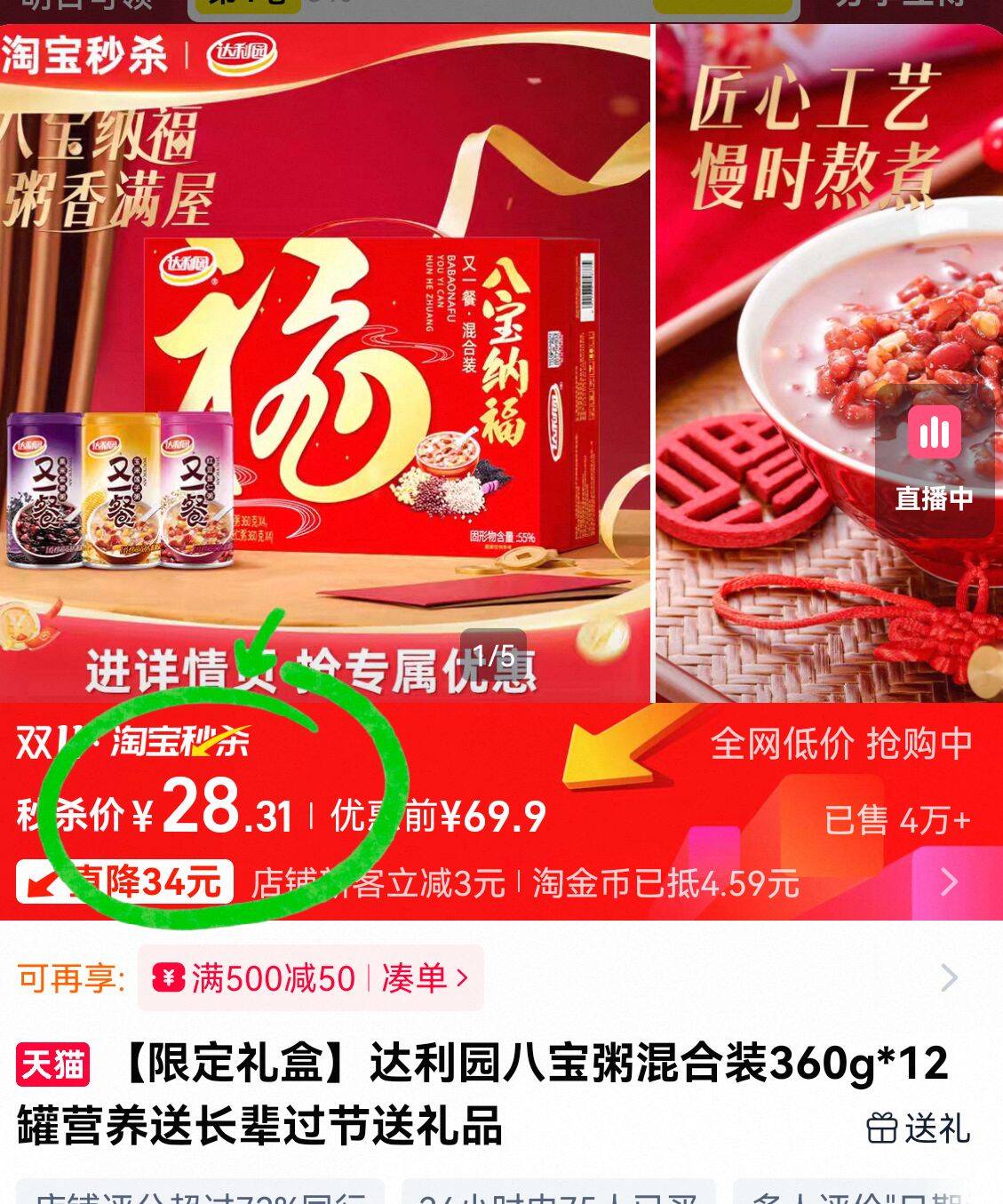 28.3亓!元详情页下単 达利园 八宝粥礼盒12罐 需叠3亓新客 淘金币成立哦好单发报员2025年11月27日 17:380举报 28.3亓!元详情页下単【达利园】八宝粥礼盒12罐需叠3亓新客 淘金币成立哦超市里都要4元一罐啦 快囤a-https://m.tb.cn/h.SxDYMES复制文案