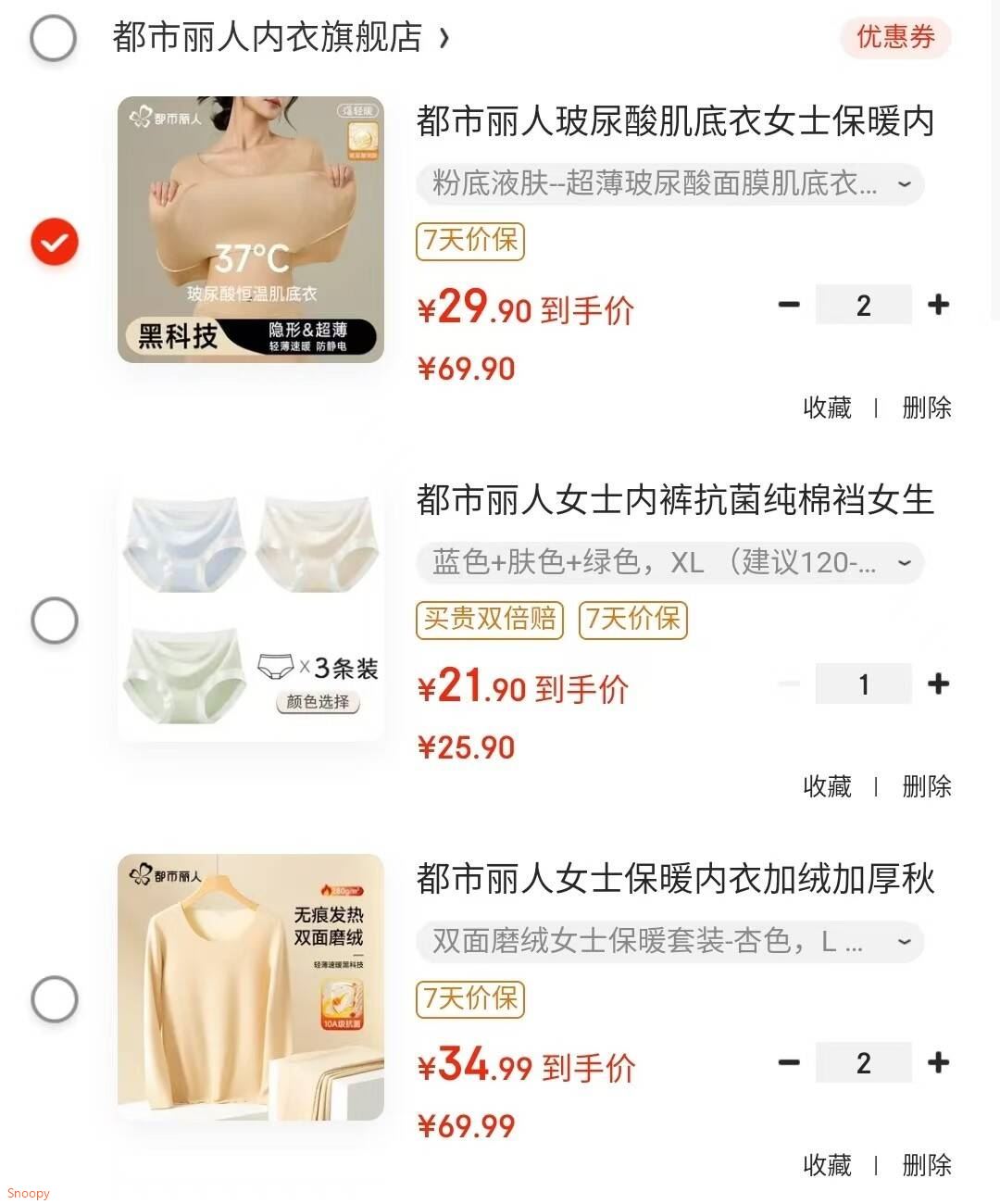 领139-70 都市丽人 女士保暖内衣加绒加厚套装,任选2套 69 都市丽人 女士内裤抗菌纯棉裆 3条装 21.9好单发报员2025年11月28日 20:410举报 https://u.jd.com/WOfm4OK都市丽人 女士保暖内衣加绒加厚套装,任选2套【69】https://u.jd.com/Wgf7P4G都市丽人 女士内裤抗菌纯棉裆 3条装【21.9】https://u.jd.com/W1f5tMJ复制文案