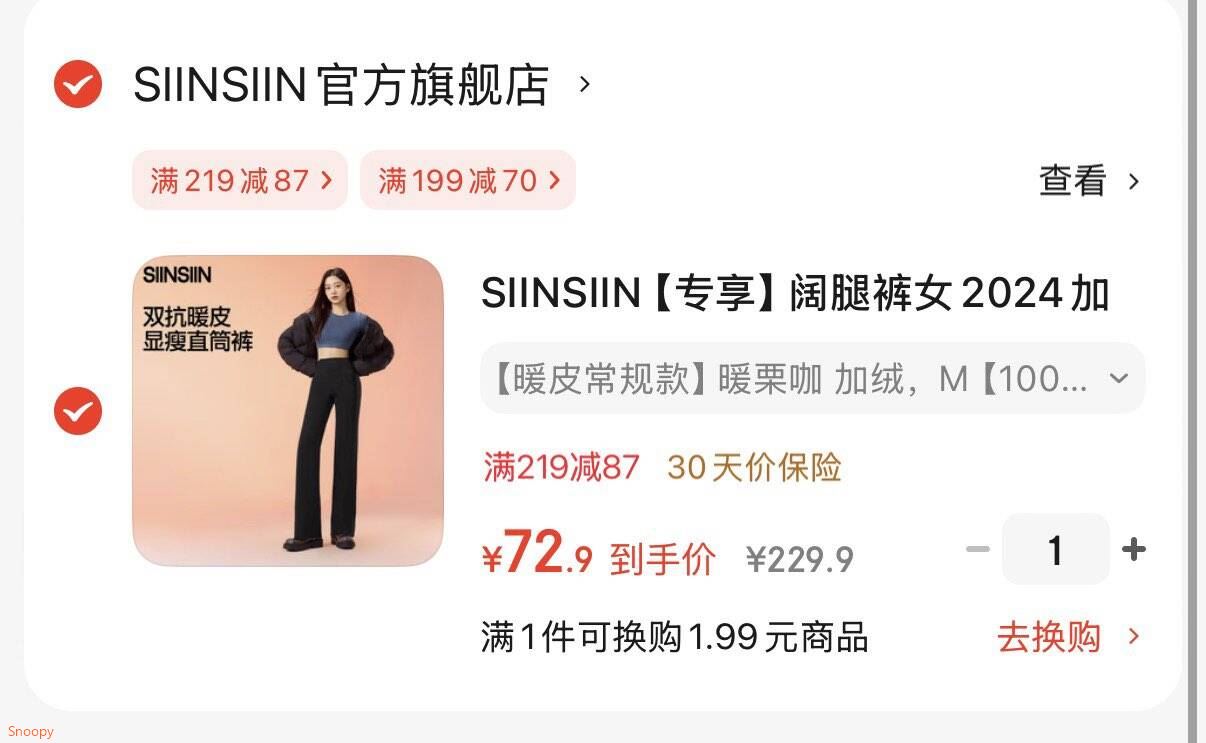 SIINSIIN暖皮加绒阔腿裤 72.9亓