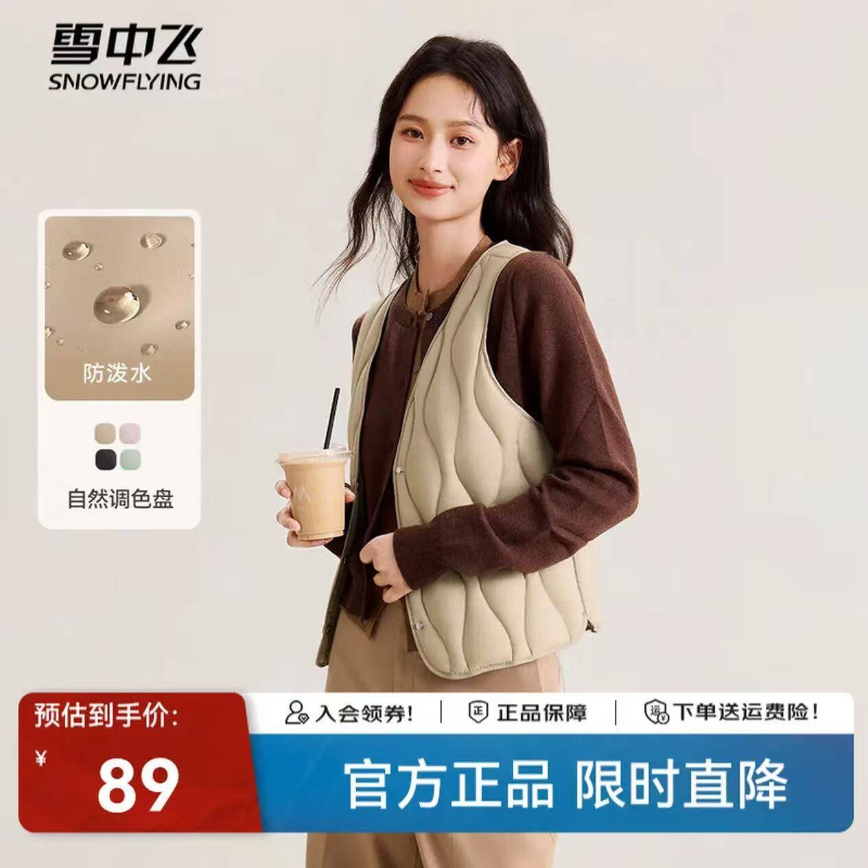 雪中飞马甲发車 先领59-20补帖卷 雪中飞 女秋冬羽绒V领马甲