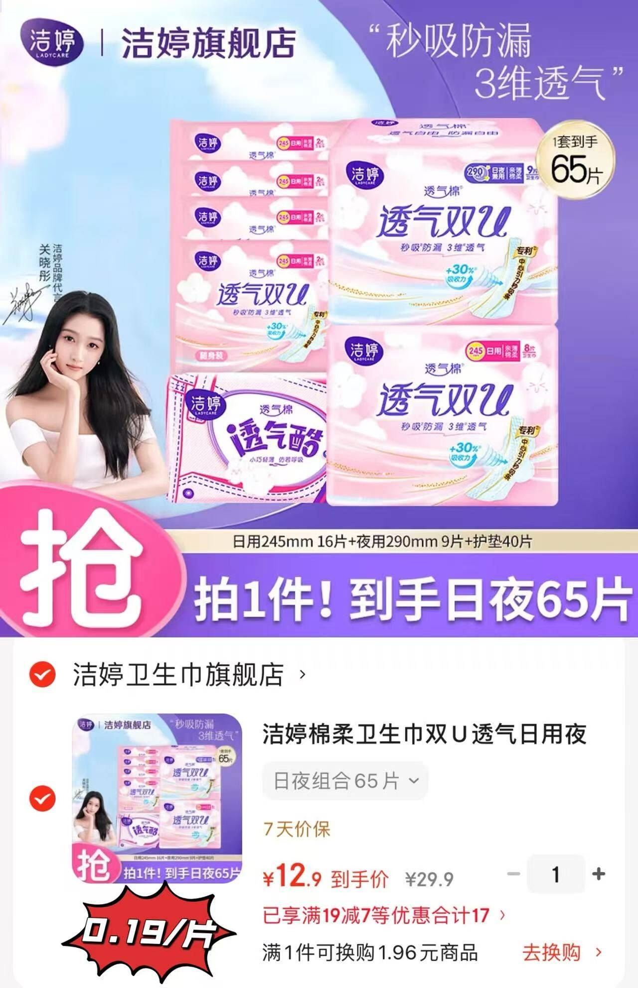 折0.19元/片!65片共12.9元!