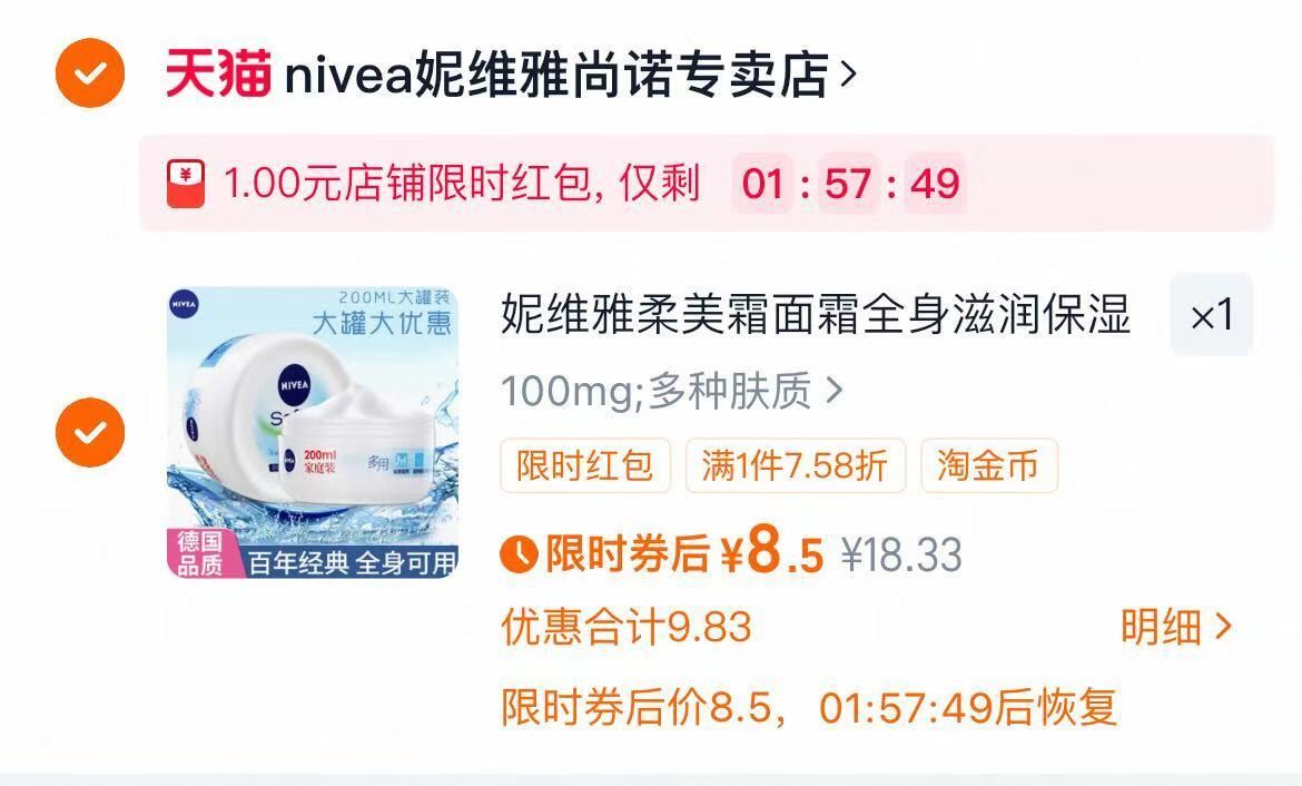 妮维雅补水面霜100ml8元.9 进店铺部分号弹1包,才成立 -好单发报员2025年11月29日 19:420举报 妮维雅补水面霜100ml8元.9进店铺部分号弹1包,才成立-秋冬干燥,补水面霜安排上!大牌妮维雅的,性价比无敌https://m.tb.cn/h.SBCIB1a复制文案