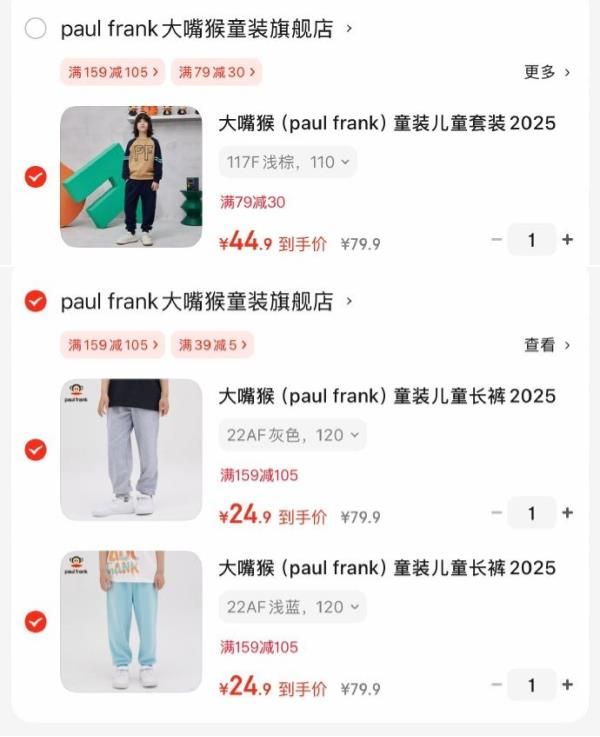 大嘴猴(paul frank)童装儿童套装,【44.9】