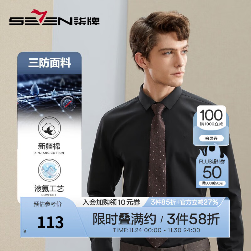 柒牌 男士休闲翻领长袖衬衫