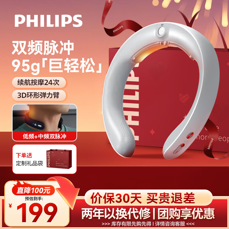 【JD自营】飞利浦(PHILIPS)肩颈颈椎按摩器按摩仪
