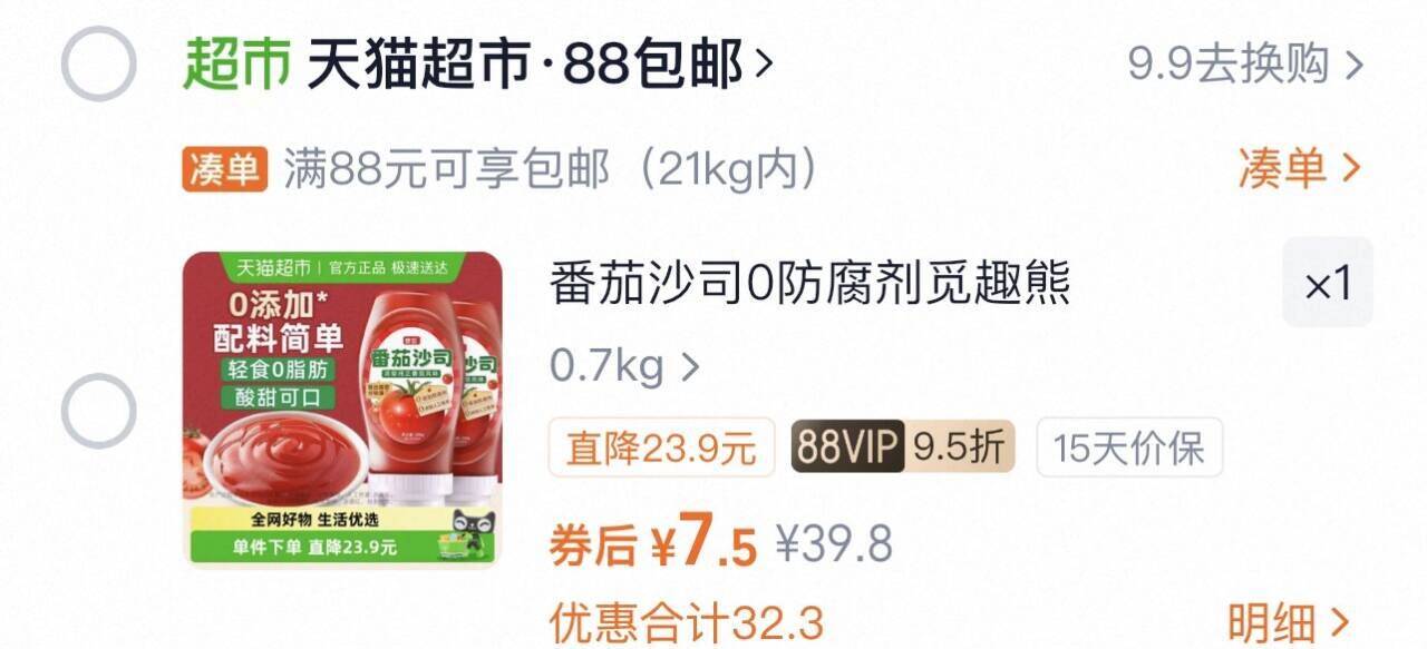 vip 7.5亓,折3.7/瓶 觅趣熊 番茄沙司280g*2瓶 好单发报员 2025年11月30日 13:38 0 举报 vip 7.5亓,折3.7/瓶觅趣熊 番茄沙司280g*2瓶https://m.tb.cn/h.SzQipf9 复制文案
