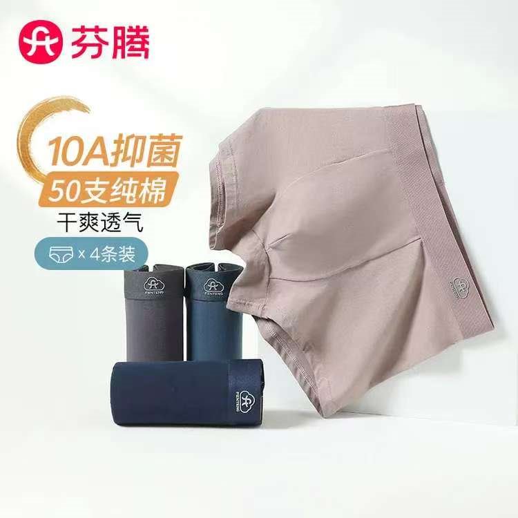 芬腾 男10A抑菌平角内裤4条