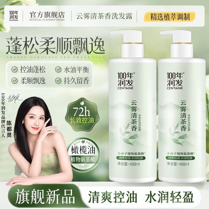100年润发 云雾清茶香洗发露 488ml*2瓶 拍下51.9元 折25.9/瓶