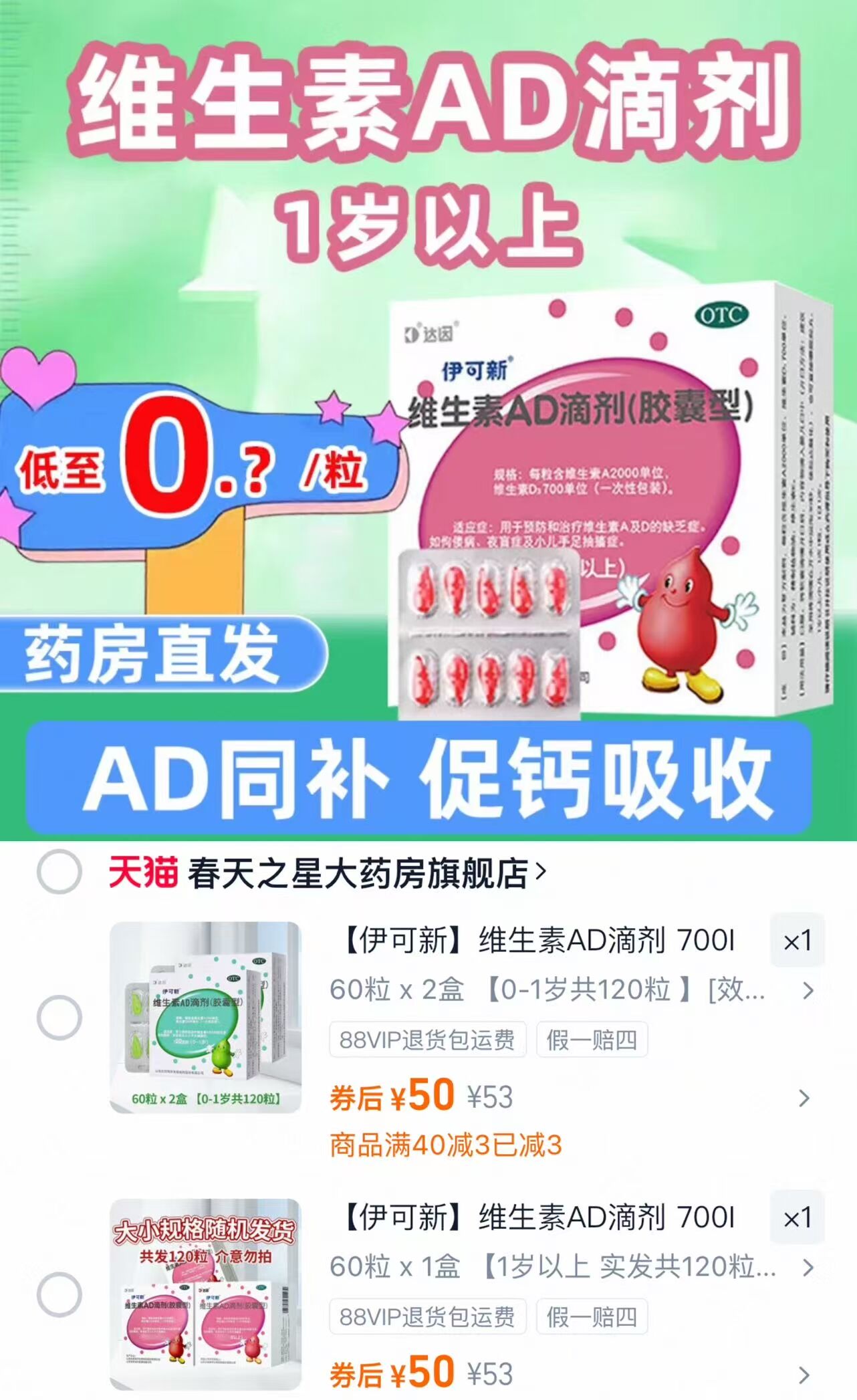 50亓,0.4/粒 伊可新维生素AD,一起120粒好单发报员2025年12月01日 09:430举报 50亓,0.4/粒伊可新维生素AD,一起120粒https://m.tb.cn/h.SA0YzXM复制文案