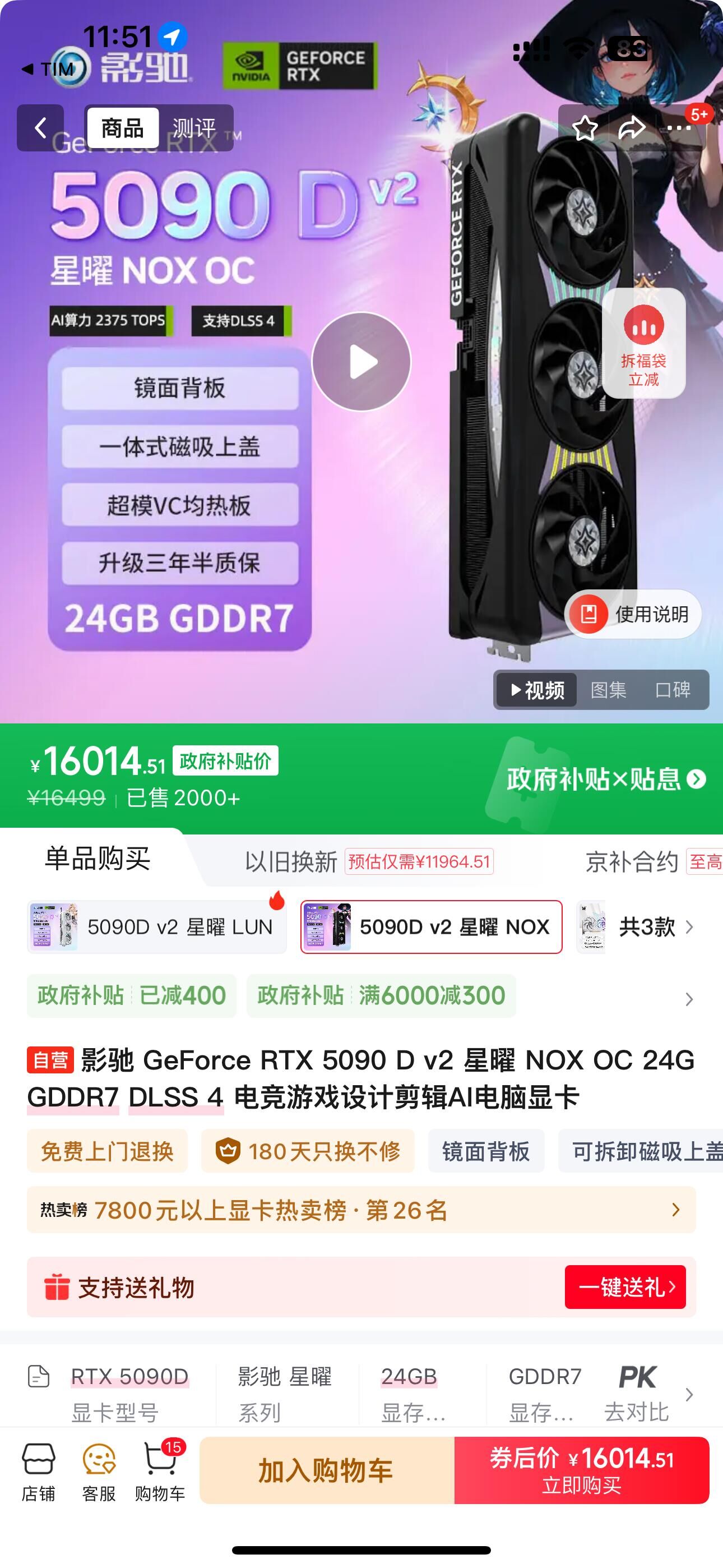 自营 微星5070TI 幻影师 ,6269 自营 影驰5090Dv2 星曜 , 16019 黑白色可选 好单发报员 2025年12月01日 11:53 0 举报 自营 微星5070TI 幻影师 ,6269https://u.jd.com/WGkvDT4自营 影驰5090Dv2 星曜 , 16019黑白色可选https://u.jd.com/W1kIIIv 复制文案