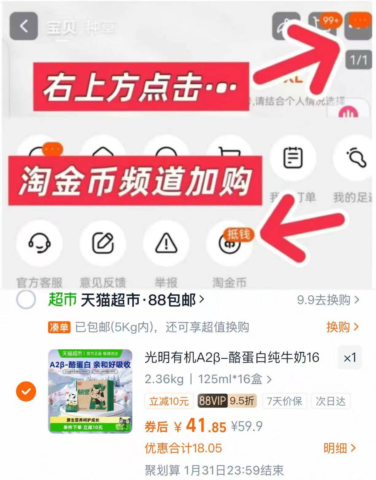 1、主图右上角三个点-淘金帀抵扣 44.1元 猫超包邮款 光明有机纯牛奶125ml*16盒 好单发报员 2025年12月01日 13:48 0 举报 1、主图右上角三个点-淘金帀抵扣44.1元【猫超包邮款】光明有机纯牛奶125ml*16盒https://m.tb.cn/h.SzSnIuC https://m.tb.cn/h.SzSMpOg 复制文案