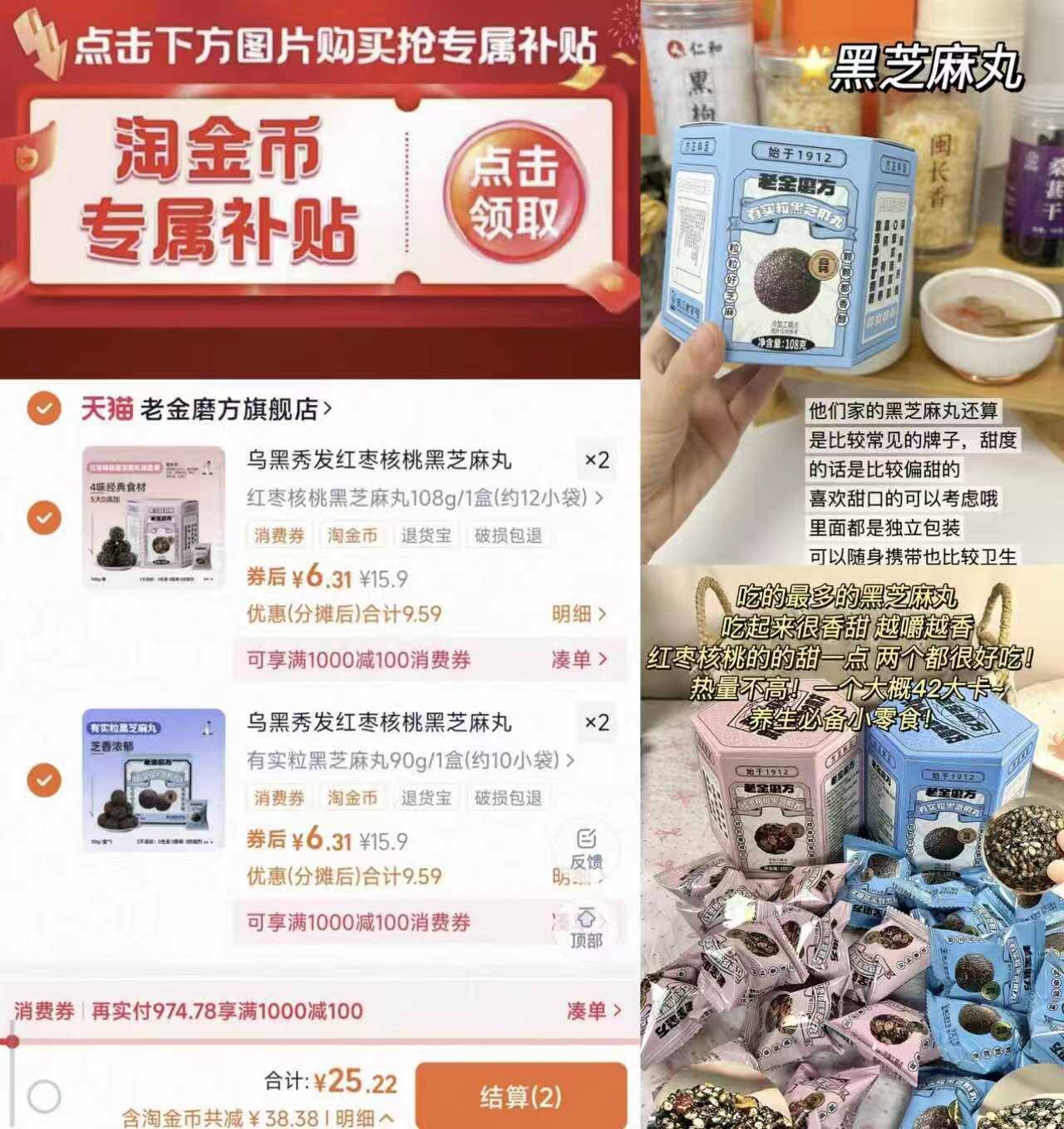 老金磨方黑芝麻丸 下拉淘金币 拍④件25元.2 实粒有嚼劲 还是独立包装好单发报员2025年12月01日 14:280举报 老金磨方黑芝麻丸下拉淘金币 拍④件25元.2实粒有嚼劲 还是独立包装一包才42大卡 养生必备零食-https://m.tb.cn/h.SBrlrVG复制文案
