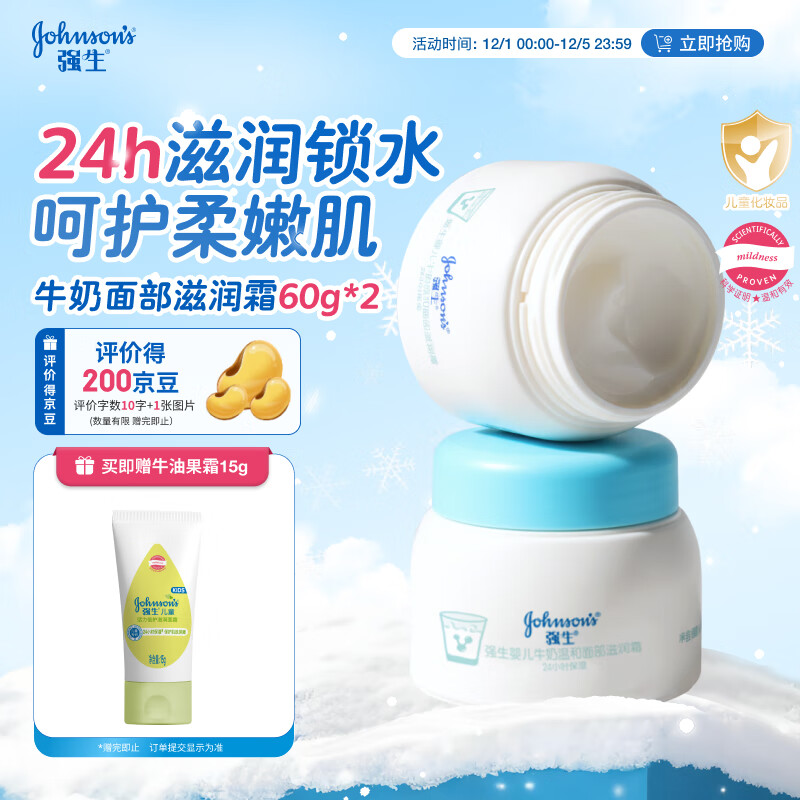 【JD自营】强生 婴儿牛奶滋润霜 60g 2瓶