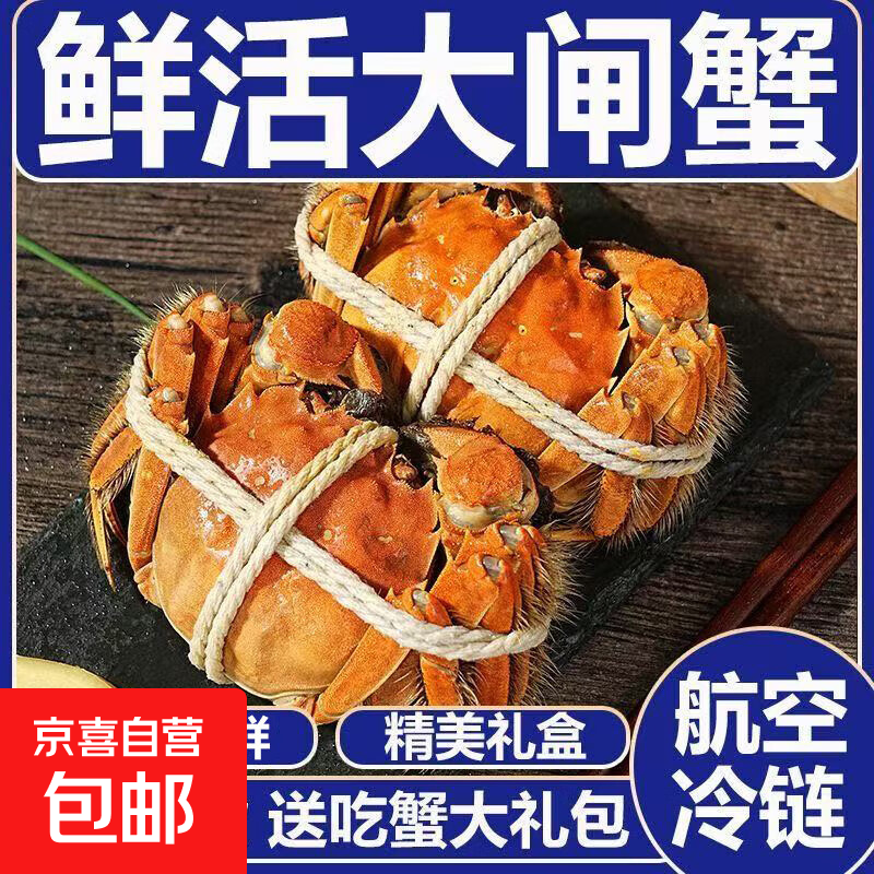 【京喜自营】鲜活大闸蟹礼盒装 4两公 3两母4对8只