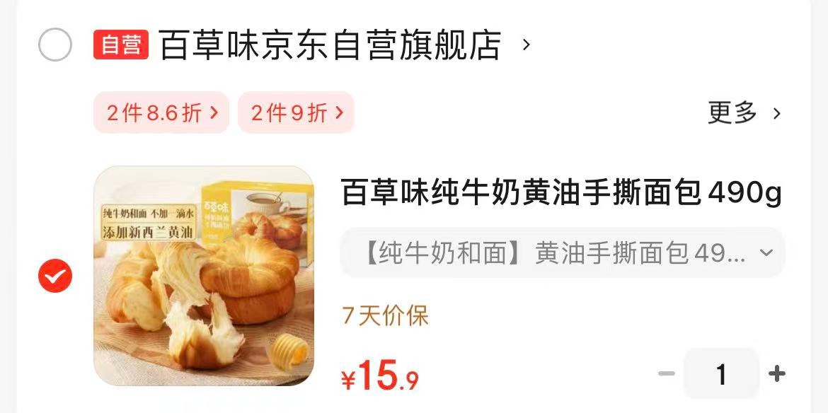 百草味 纯牛奶黄油手撕面包490g【15.9】