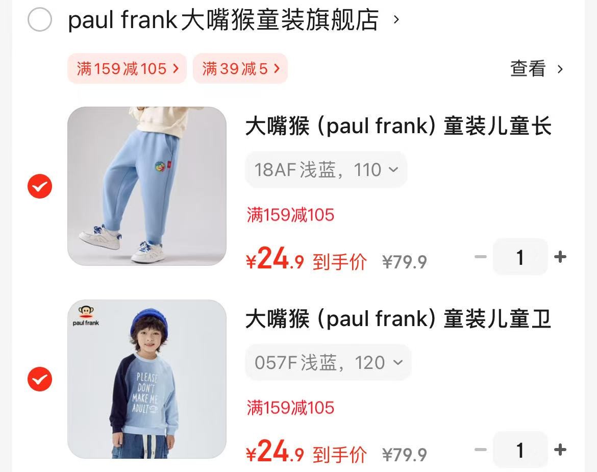 大嘴猴 童装儿童卫衣/长裤,任选2件【49.9】